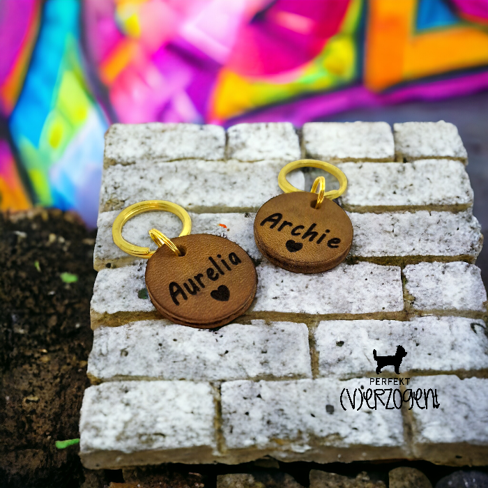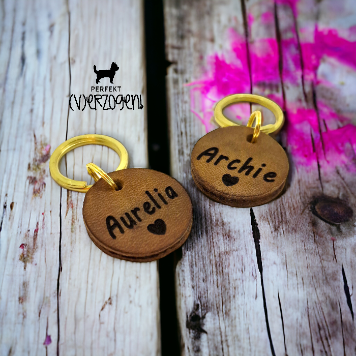 Edelstahl Hundemarke gelasert, Hundemarke Leder gelasert